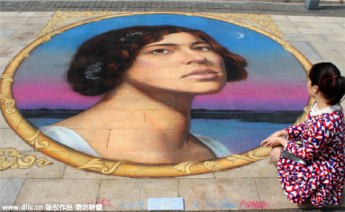 A visitor views a 3D pastel work created by a Mexican artist during the 2015 China pastel festival at Ligongdi scenic area in Suzhou, East China's Jiangsu province, Oct 24, 2015. [Photo/Xinhua]