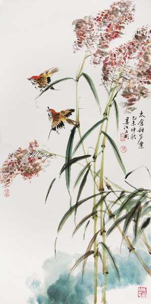 A painting depicting a sweet sorghum plant, created by Yan Wenbin in autumn, 2015. [Photo from Taicang Daily] |
