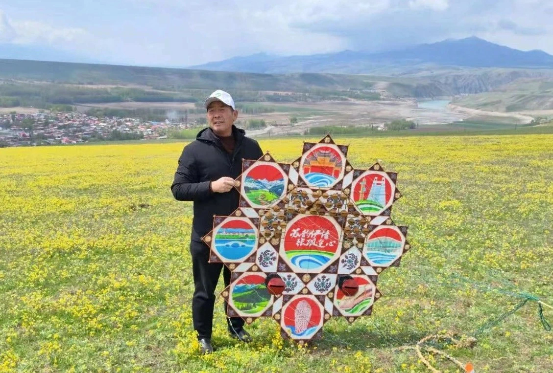 The kite designed by Zhangjiagang kite master Ni Henian symbolizes the friendship between Zhangjiagang and Gongliu. [Photo/WeChat account: zjgwtgl]